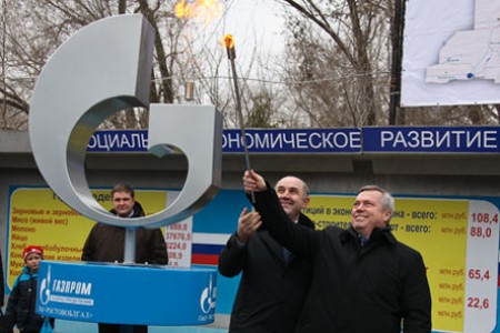Губернатор Василий Голубев зажег символический факел в честь пуска газа в селе Заветном. Благодаря сотрудничеству с «Газпромом», грандиозные планы по газификации последнего негазифицированного района Ростовской области удалось реализовать, сообщает пресс-служба губернатора области.