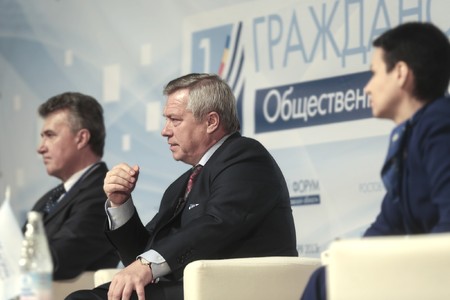 Василий Голубев на гражданском форуме Общественной палаты Ростовской области. По его мнению, общественные советы в муниципальных образованиях региона позволят наладить и укрепить взаимодействие власти и гражданского общества.