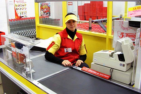 «В случае образования очереди в более чем пять человек сотрудник на кассе с помощью нажатия „Красной кнопки“ может вызвать еще одного сотрудника, таким образом увеличив количество работающих касс (за исключением промежутков во время проведения инкассации). Кнопки для подачи сигнала устанавливаются на все кассы магазина. Сами звонки звучат как в торговом зале, так и в подсобных помещениях», — комментируют в Х5.