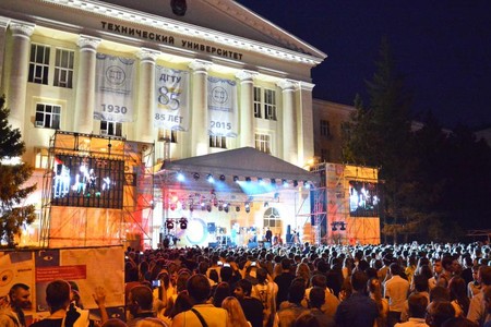 Вообще, церемония была наполнена множеством ярких моментов. Так, перед зрителями предстала богатейшая история вуза с 1930 года. После Бесарион Месхи вручил знак отличия «Почетный доктор ДГТУ» Специальному представителю Президента Российской Федерации по международному культурному сотрудничеству Михаилу Швыдкому. Учащихся и преподавательский состав с юбилеем университета поздравил Чрезвычайный полномочный посол Индонезии Джаухари Оратмангун, ДГТУ был вручен грант на создание первого в России центра гармонизации межнациональных отношений. А вечером площадь Гагарина перед зданием вуза заполнили сотни студентов...